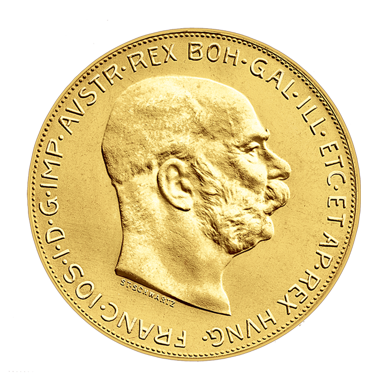 Die österreichische 100 Kronen Goldmünze ist unter Sammlern eine beliebte Anlage. Die 100 Kronen Münze blickt, seit ihrer Einführung zum Thronjubiläum des österreichischen Kaisers Franz Joseph I. im Jahre 1908, auf eine lange Geschichte zurück. Bis 1915 fungierte sie als offizielles Zahlungsmittel in Österreich-Ungarn. Die Vorderseite zeigt das mehrfach veränderte Portrait des Kaisers Franz Joseph I. und das darunter stehende Prägejahr. Auf der Rückseite ist der doppelköpfige Adler abgebildet, das Wappentier des österreichischen Kaisertums. Die 100 Kronen Münze hat ein Bruttogewicht von 33,875 g, bei einer Feinheit von 900/1000. Eine Besonderheit der Krone ist, dass sie bis 1988 nachgeprägt wurde. Diese hier angebotene Nachprägung ist mit dem Jahr 1915 datiert, dem letzten Prägedatum der 100 Kronen.