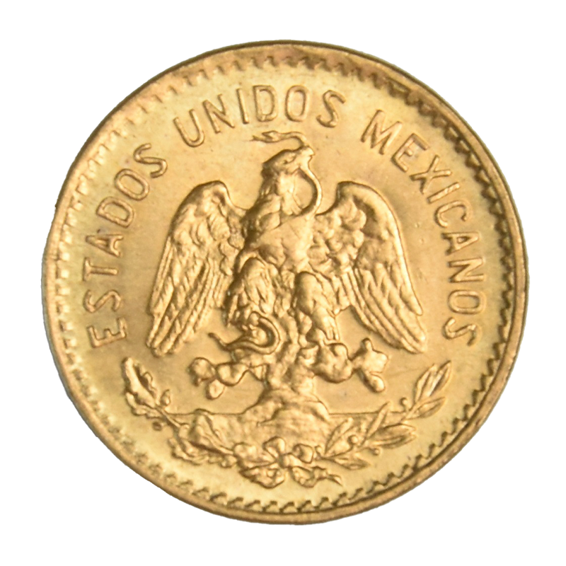Die goldene 5 Pesos Münze aus Mexiko wurde von 1905 bis 1955 geprägt.