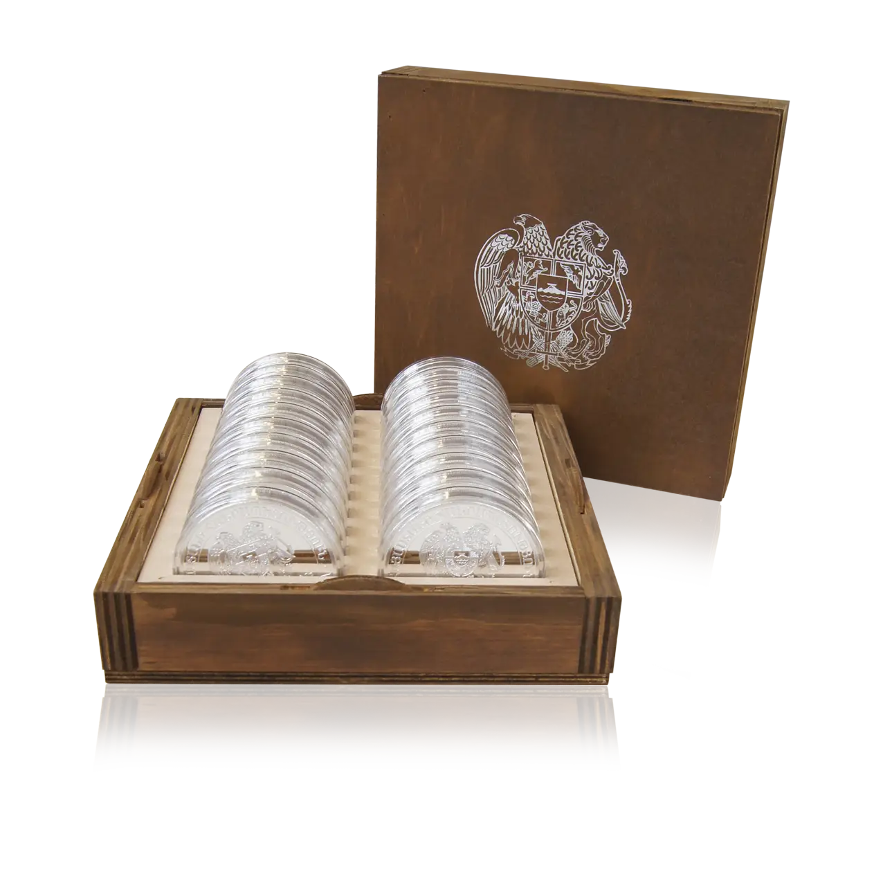 Die Münze gilt in Armenien als offizielles Zahlungsmittel (Währung DRAM), wobei umgerechnet 1 Euro ca. 500 DRAM sind. Die 10 oz Silbermünze wird in gekapselter Form geliefert.
