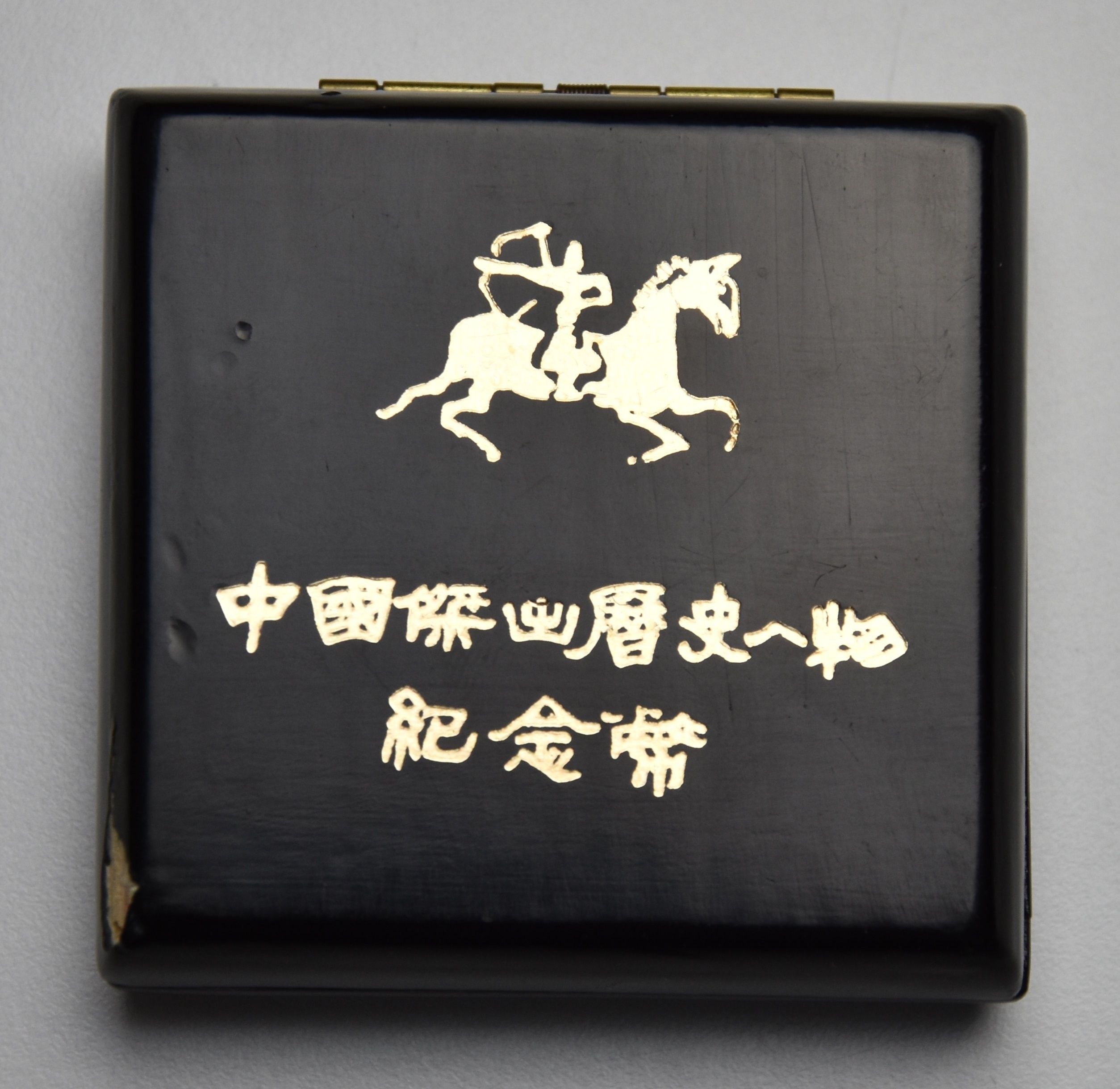 Die Bildseite trägt die aristokratische Gestalt des Qin Shi Huang, der als erster Kaiser die sich ständig bekriegenden Reiche Chinas vor mehr als 2000 Jahren vereinte. Dahinter eine Ansicht der chinesischen Mauer.