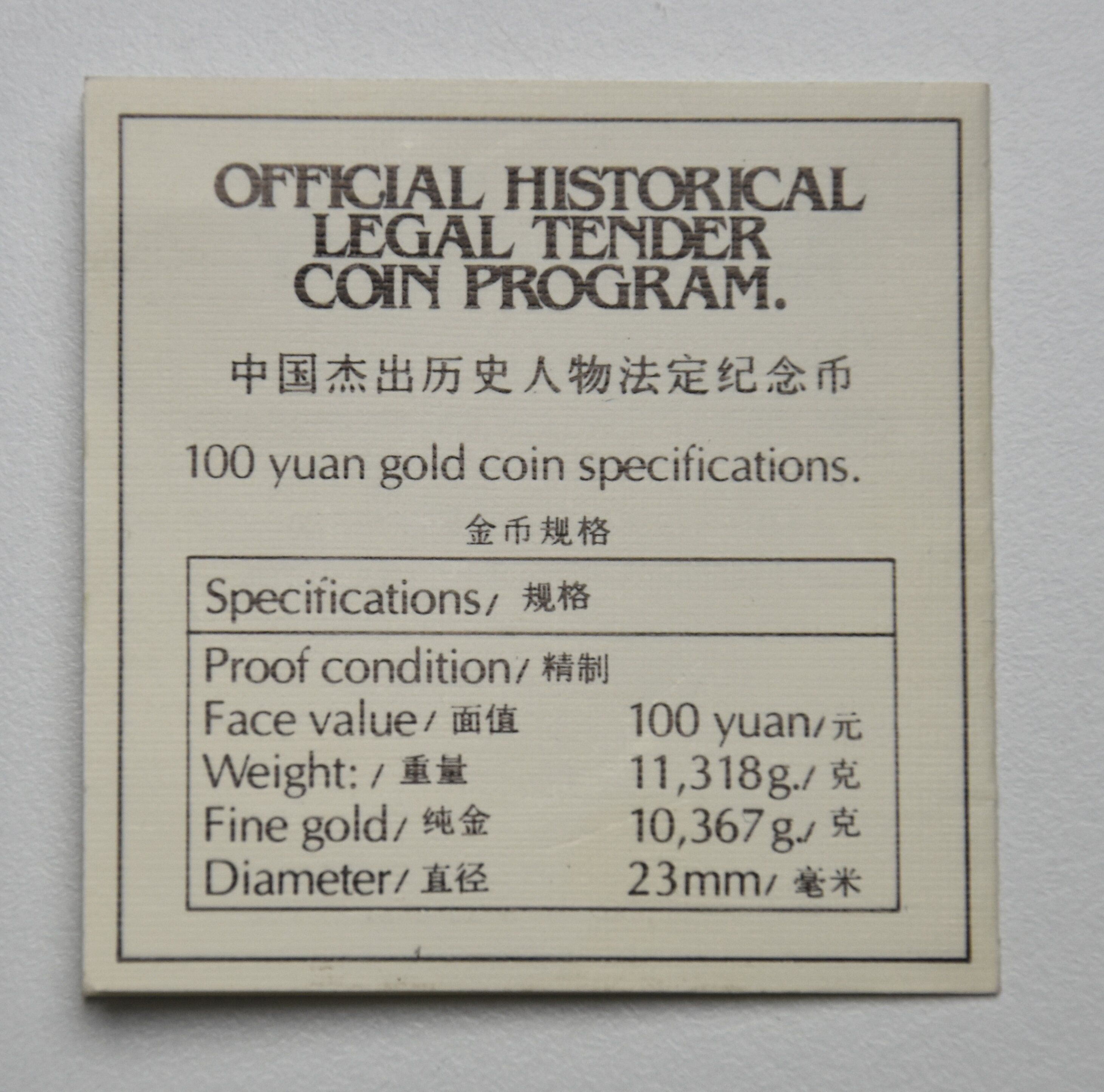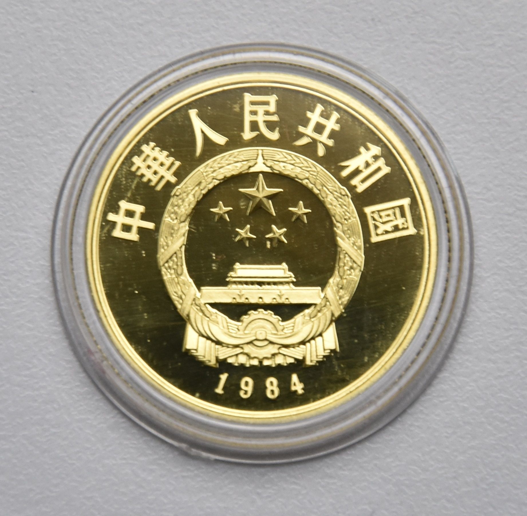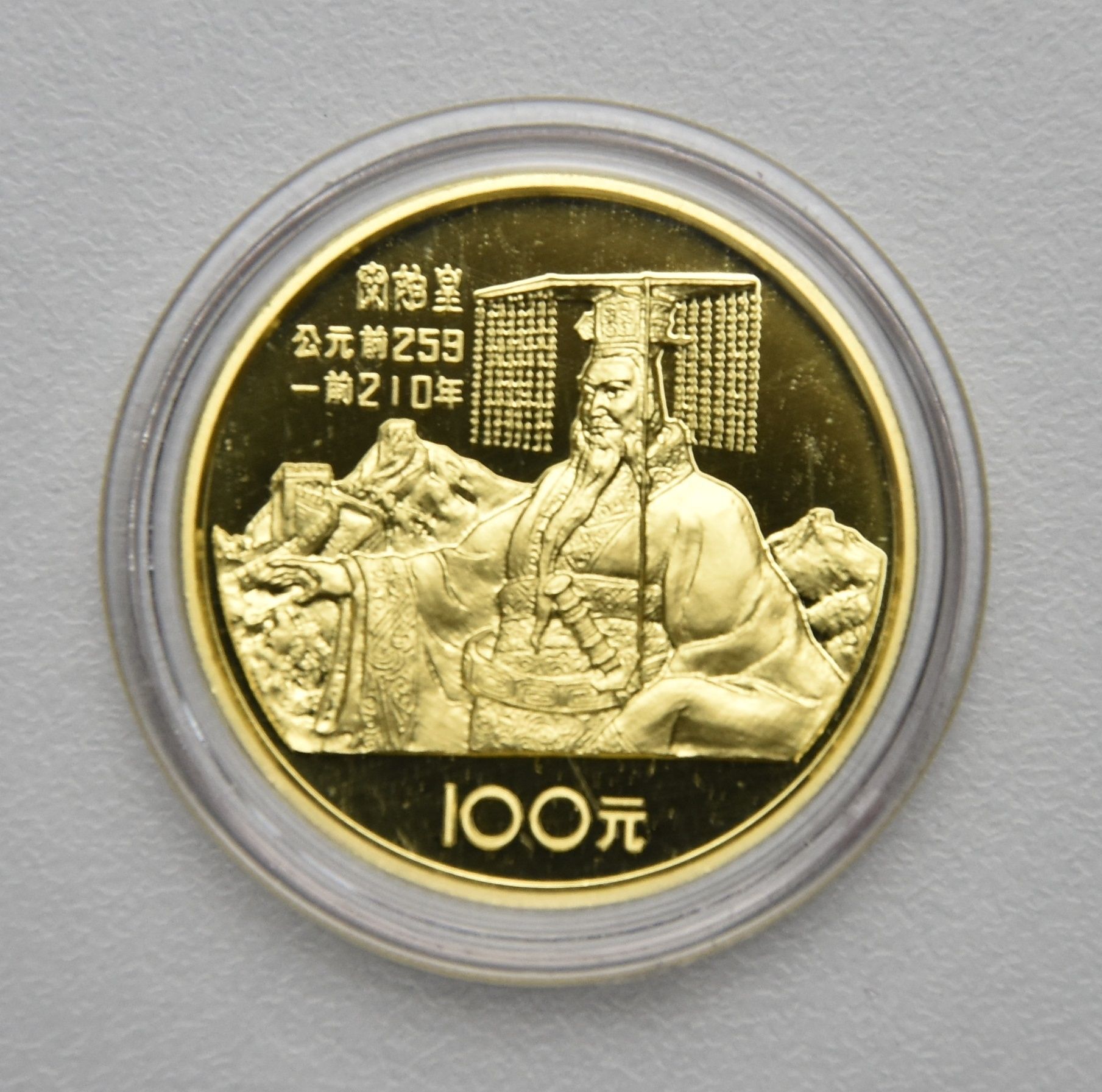 China 100 Yuan 1984 Goldmünze "Kaiser Qin Shi Huang" Polierte Platte in original Etui und Zertifikat