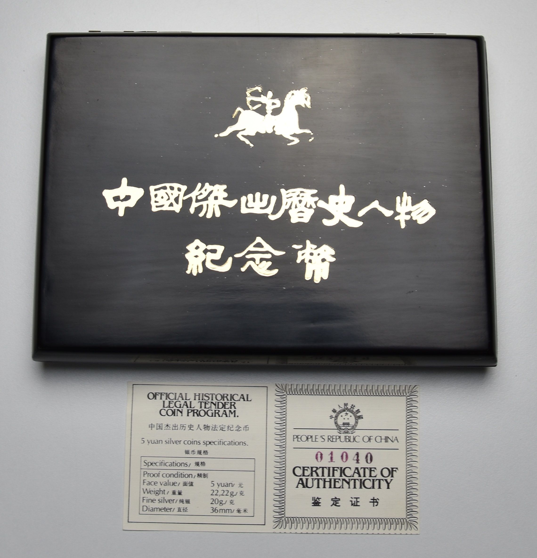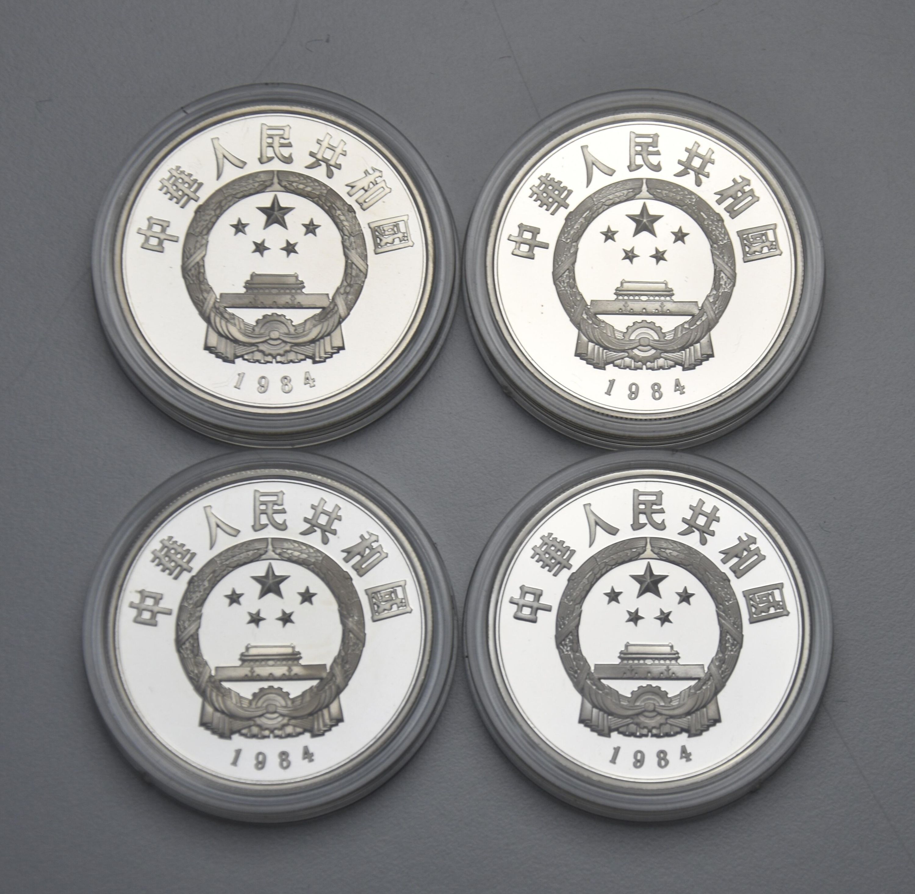 China 4 x 5 Yuan 1984 Silbermünzen - Polierte Platte inkl. original Etui und Zertifikat