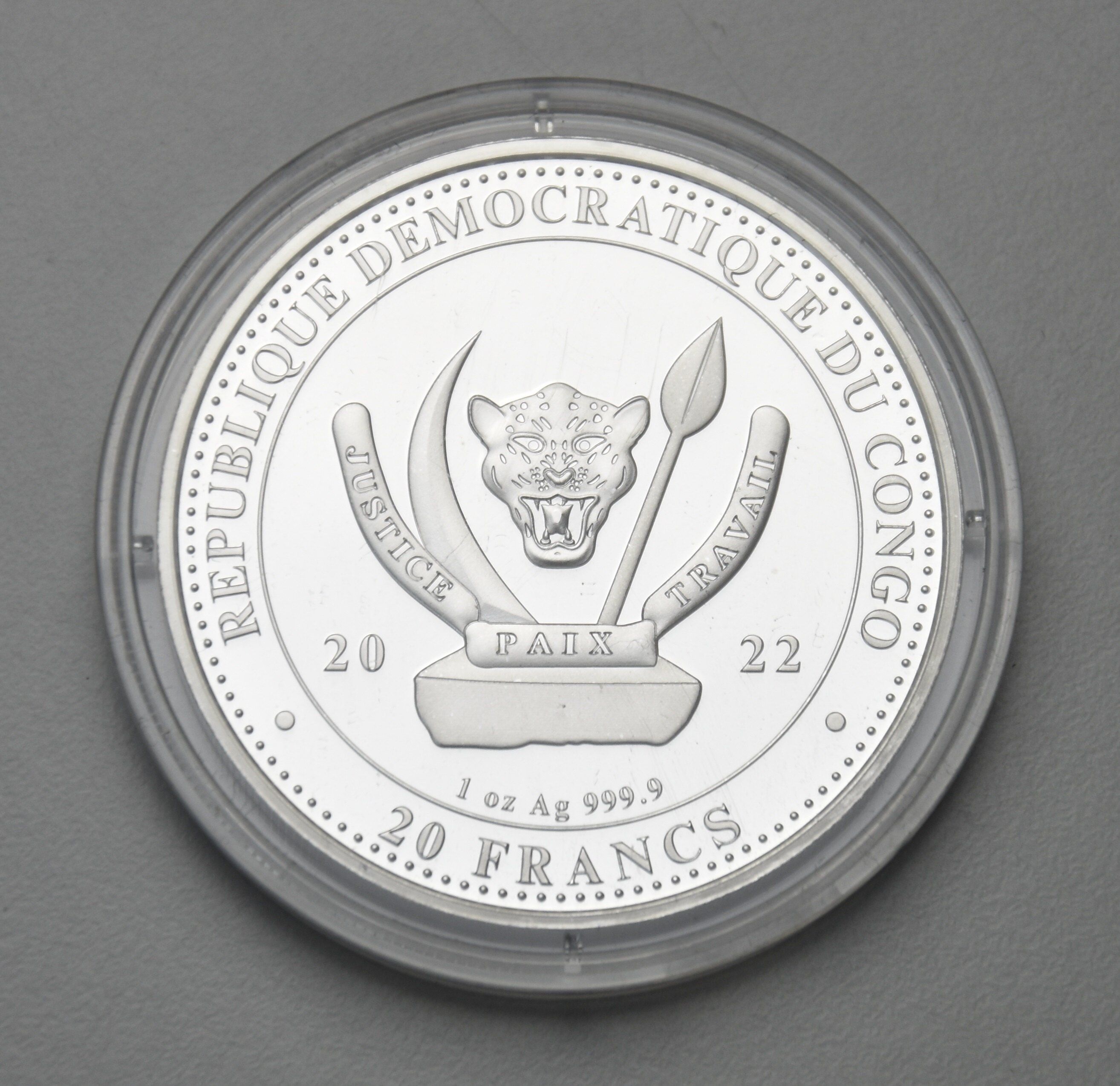 Congo 20 Francs 2022 - 1 Unze Silbermünze "Brüllender Bär"