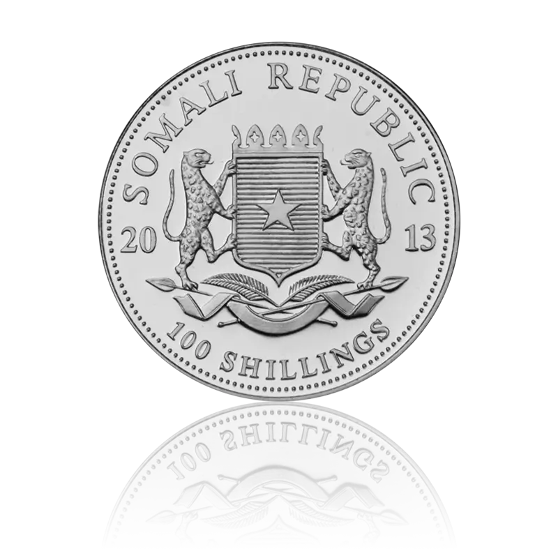 Durch das Tragen des Nennwertes von 100 Somalischen Shilling ist der 1 Unzen Somalia Elefant ein offiziell zugelassenes Zahlungsmittel in der somalischen Republik.