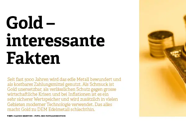 Seit fast 5000 Jahren wird das edle Metall bewundert und als kostbares Zahlungsmittel genutzt. Als Schmuck ist Gold unersetzbar, als verlässlichen Schutz gegen grosse wirtschaftliche Krisen und bei Inflationen ist es ein sehr sicherer Wertspeicher und wird zusätzlich in vielen Gebieten moderner Technologie verwendet. Das alles macht Gold zu DEM Edelmetall schlechthin.