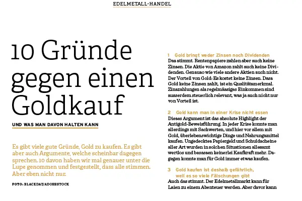Soll man vom Gold die Finger lassen? Zehn nicht ganz ernst gemeinte Gründe gegen einen Goldkauf. Und die Argumente vom Fachmann dazu.