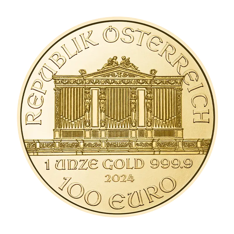 The Vienna Philharmonic Orchestra has been produced by the Austrian Mint since 1989 on behalf of the Austrian government. Its rapidly increasing popularity is mainly due to the fact that the Philharmonic is the first European gold coin with a fineness of 999.9/1000.