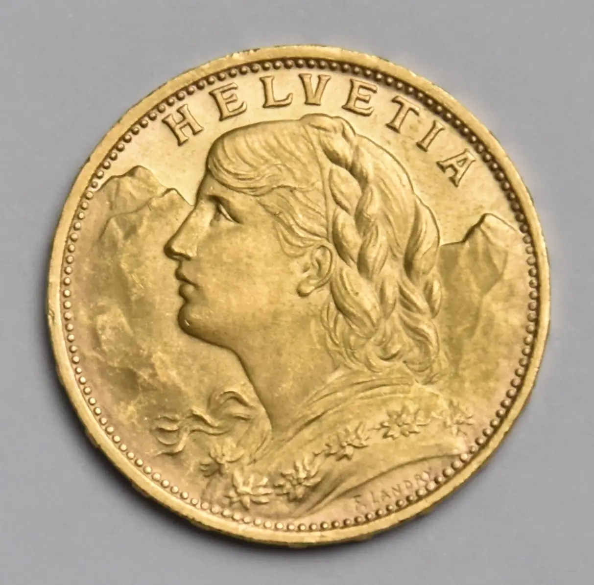 The Vreneli gold coin is one of the best-known Swiss investment coins among collectors and investors. In 1897, the Goldvreneli with a new motif design replaced the 20-franc Helvetia gold coin (Helvetia = Switzerland, mintage 1.75 million coins) minted between 1883 and 1896. Between 1897 and 1949, approximately 58.63 million of the popular Swiss Gold Vreneli coins were minted. Although the name of this gold coin was not officially changed to Vreneli until before the Second World War (and first documented in writing in 1943), all coins minted during this period are now referred to as Vreneli.