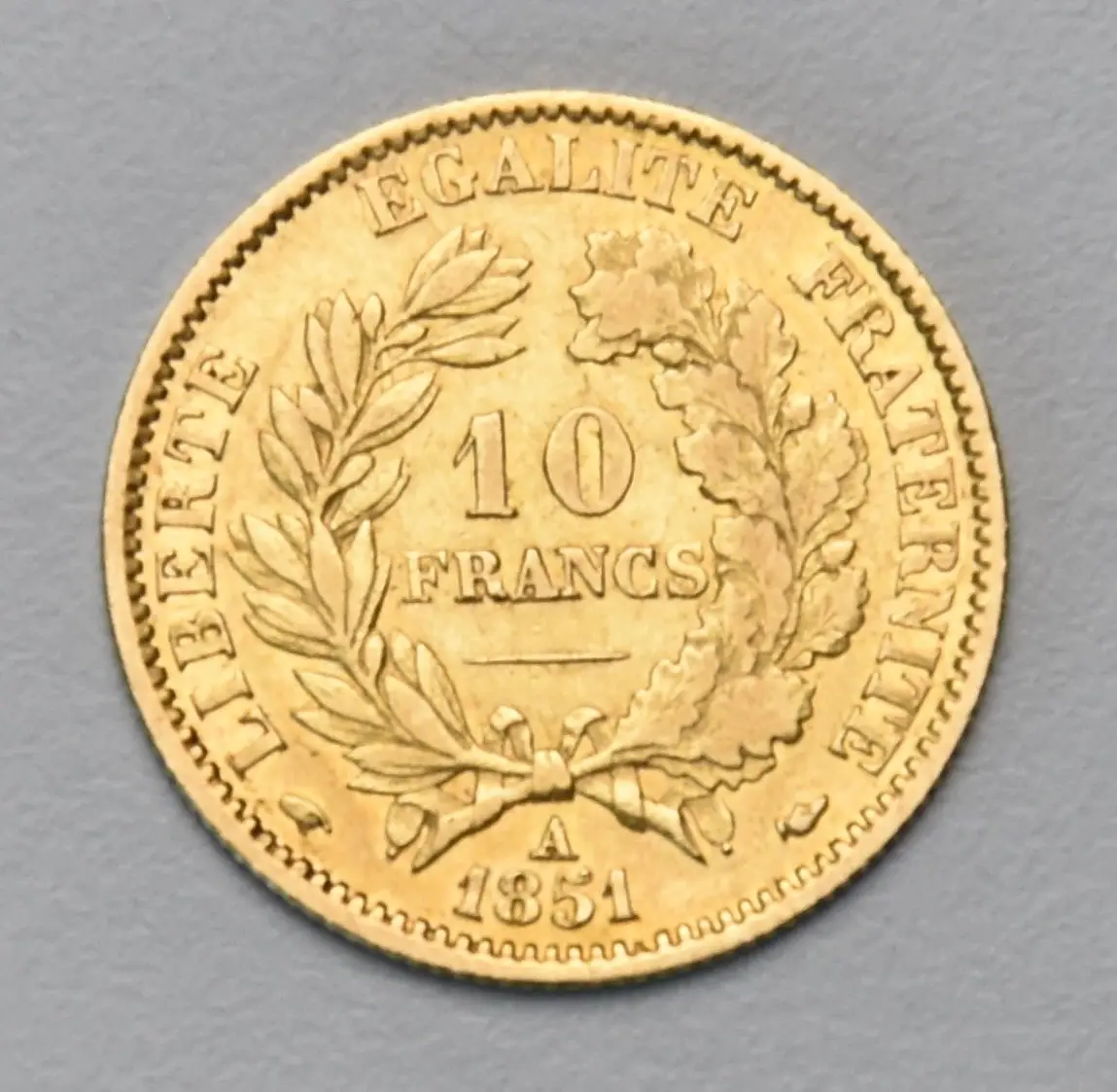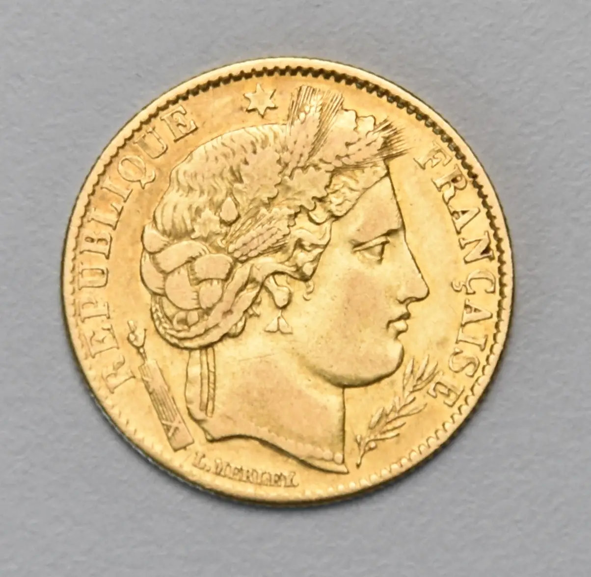 Die französische 10 Francs Goldmünze wurde mit einer Feinheit von 900/1000 geprägt.