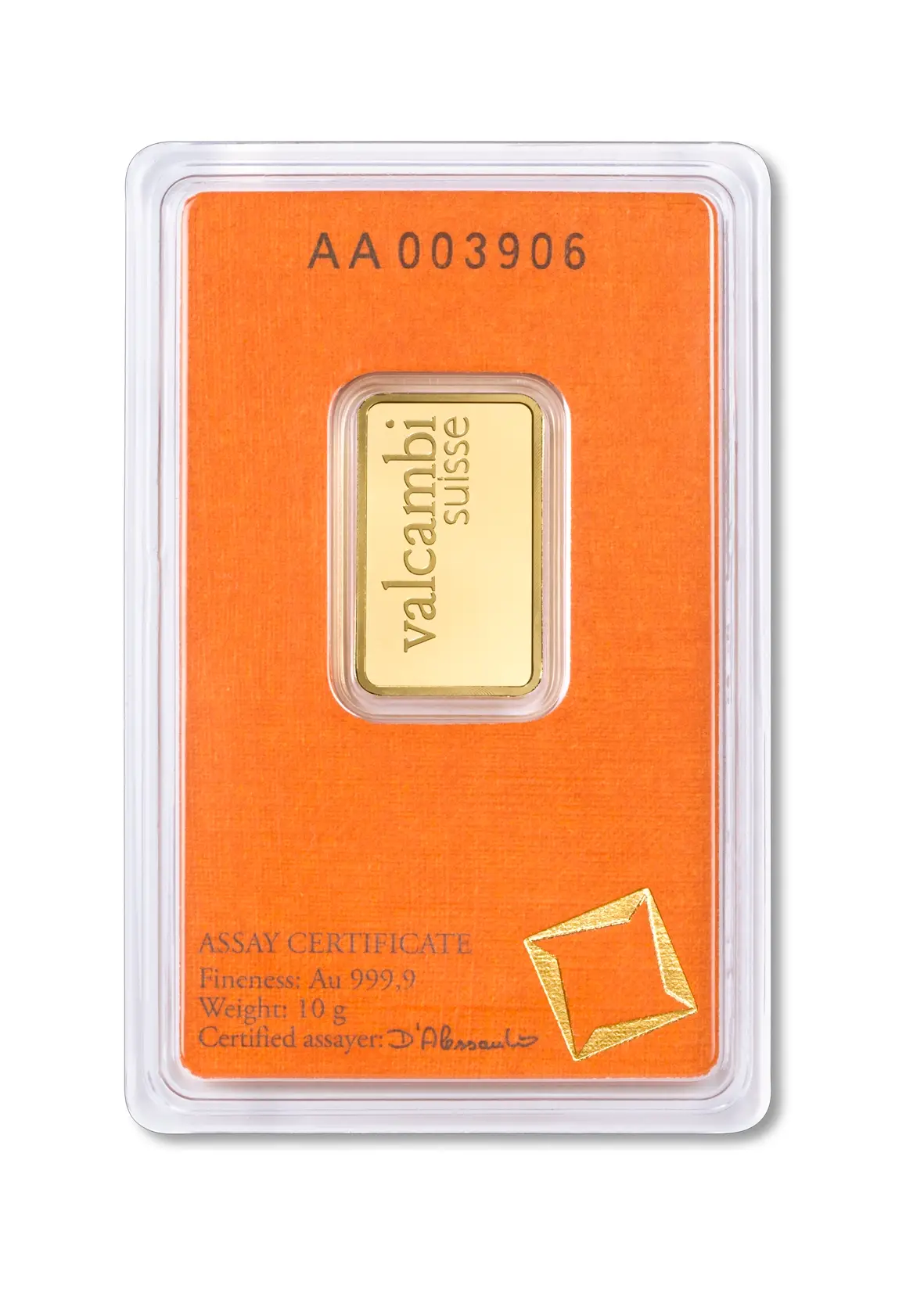 Bei diesem Goldbarren handelt es sich um ein Produkt, welches ausschließlich vom LBMA-zertifizierten Hersteller Valcambi produziert wurde. Die Goldbarren tragen das Logo von Valcambi. Diese Barren sind einzeln, meist in Blisterkarten bis inkl. des 100g Barren, verschweißt.