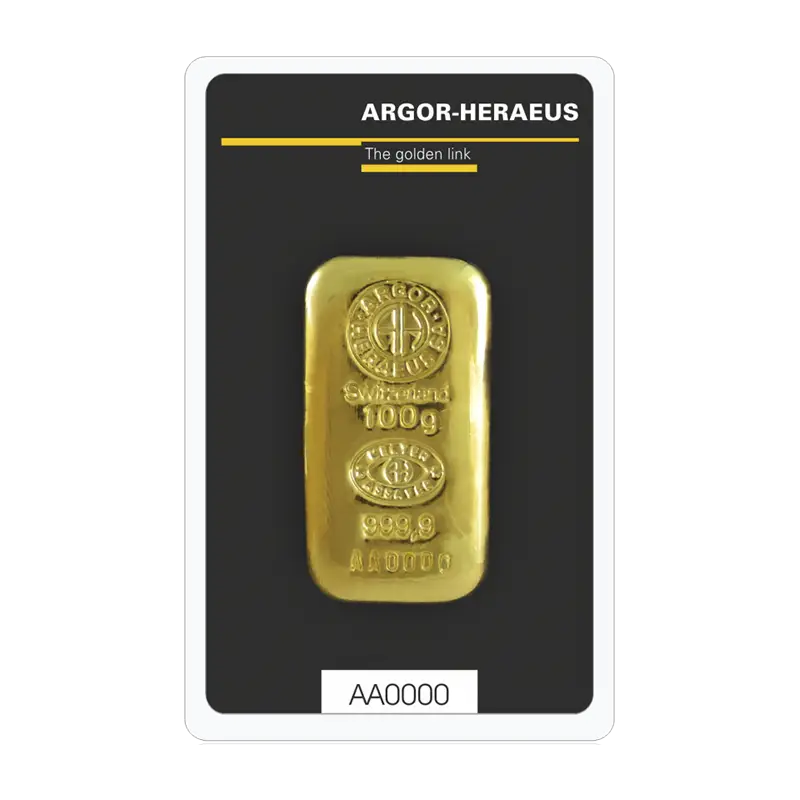 Goldbarren - 100 g .9999 ARGOR-HERAEUS
