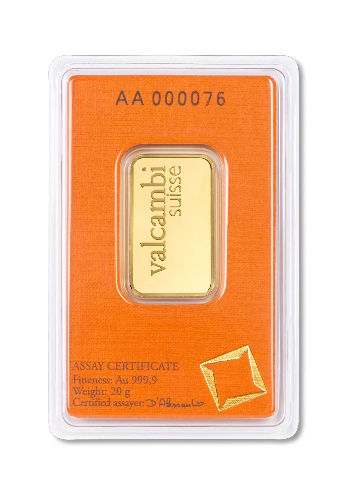 Bei diesem Goldbarren handelt es sich um ein Produkt, welches ausschließlich vom LBMA-zertifizierten Hersteller Valcambi produziert wurde. Die Goldbarren tragen das Logo von Valcambi. Diese Barren sind einzeln, meist in Blisterkarten bis inkl. des 100g Barren, verschweißt.