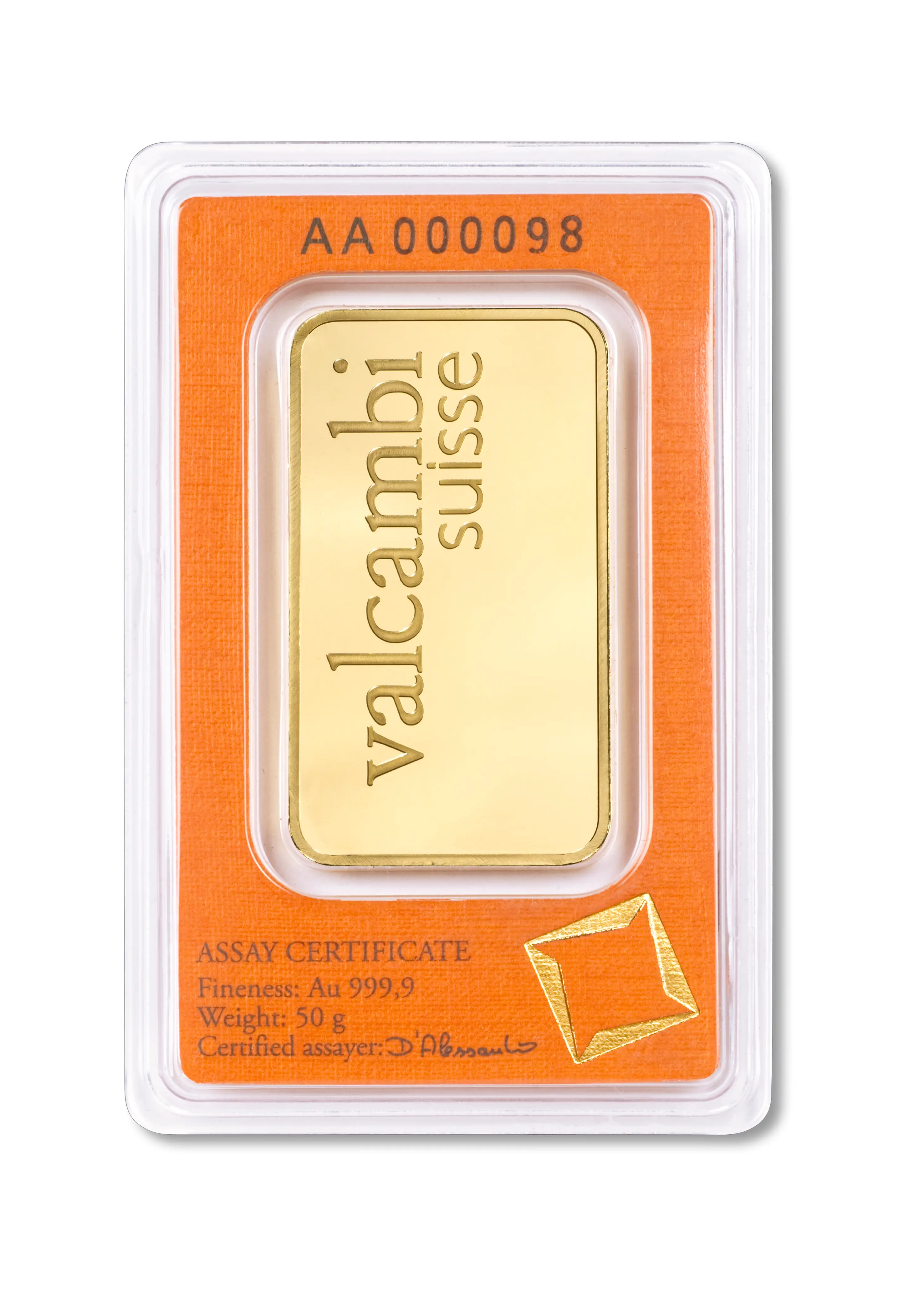 Bei diesem Goldbarren handelt es sich um ein Produkt, welches ausschließlich vom LBMA-zertifizierten Hersteller Valcambi produziert wurde. Die Goldbarren tragen das Logo von Valcambi. Diese Barren sind einzeln, meist in Blisterkarten bis inkl. des 100g Barren, verschweißt.