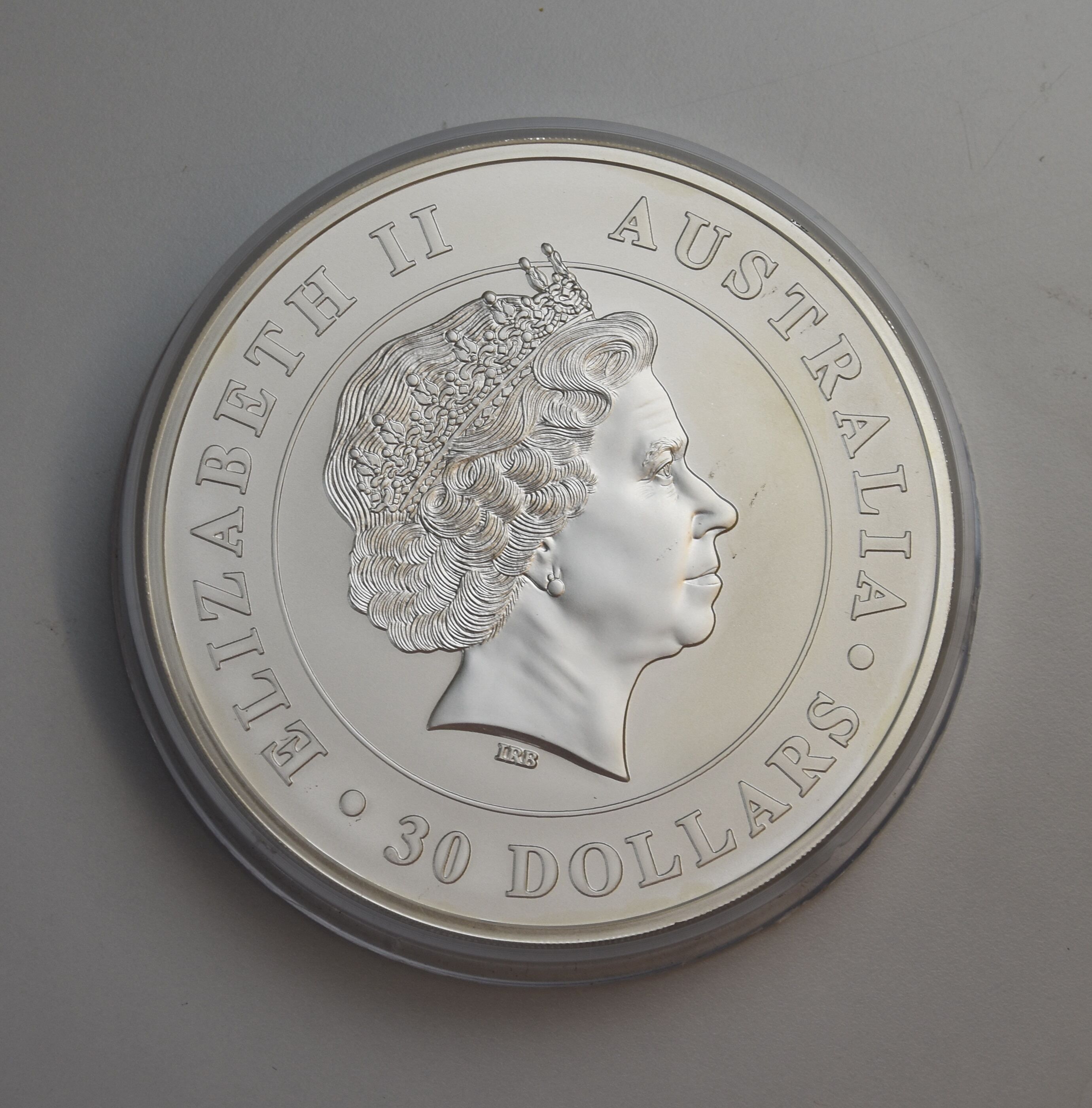 Die Rückseite zeigt das Porträt von Königin Elisabeth II., dem australischen Staatsoberhaupt und den Nennwert von 30 Dollar. Ihre Beliebtheit verdankt diese Silbermünze nicht zuletzt dem charmanten Bild des kleinen Beuteltiers.