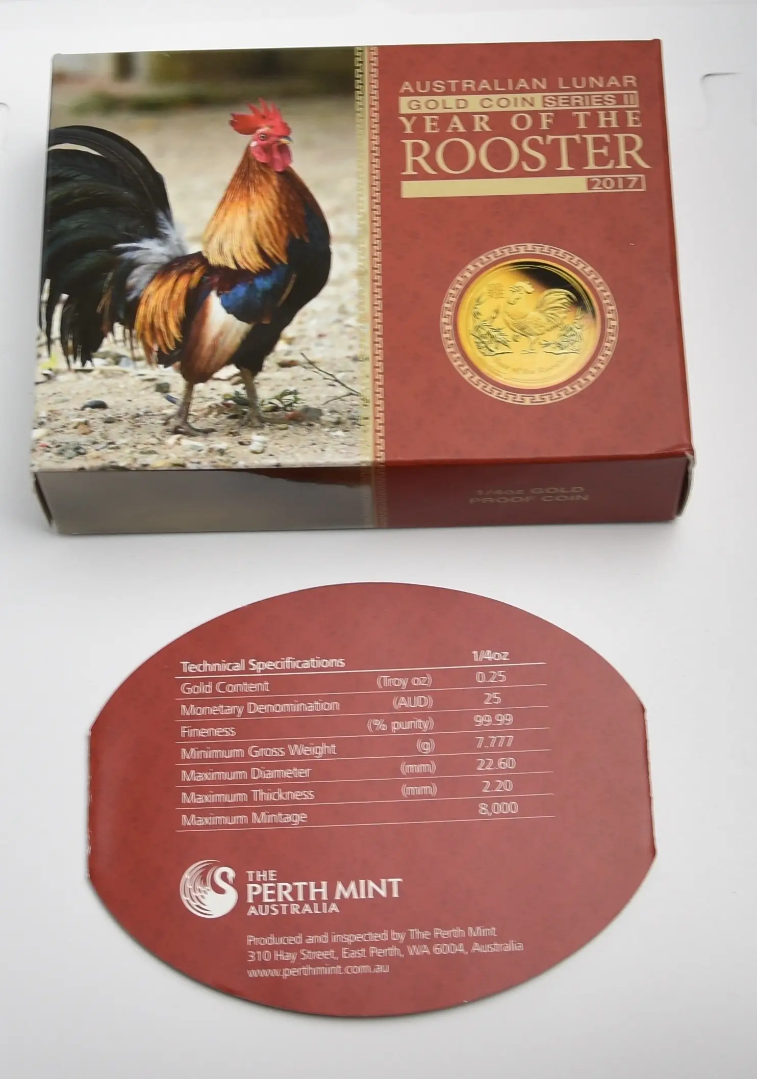 Lunar II "Hahn" 2017 - Australien 1/4 oz Goldmünze "Polierte Platte"
