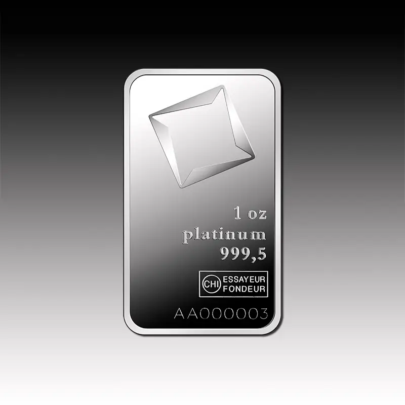 Diese 1-oz-Platinbarren stammen von dem renommierten Herstellern Valcambi. Sie sind nach dem „Good-Delivery“-Standard des LPPM ausgezeichnet und werden international gehandelt.