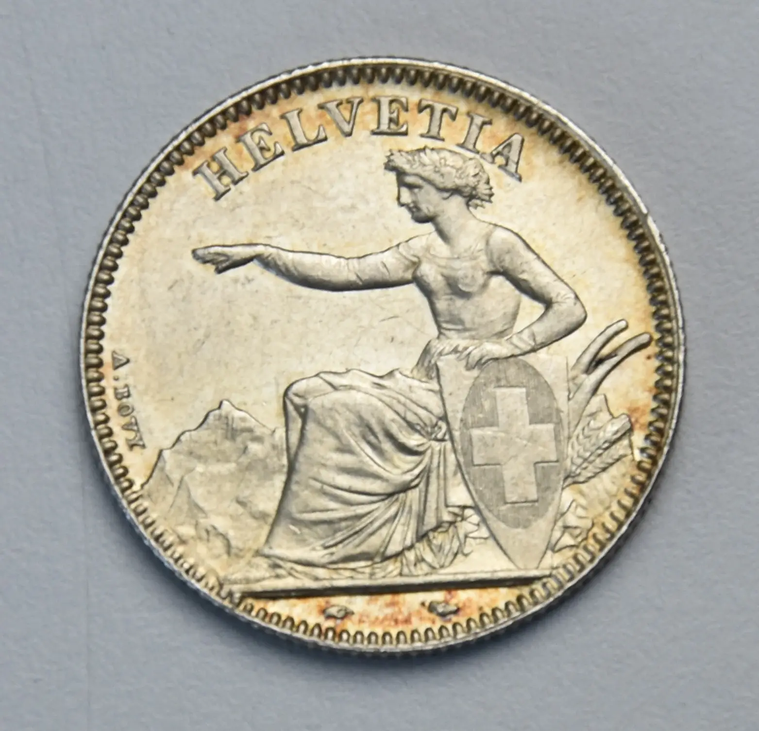 Schweiz 2 Franken - 1850 A (sitzende Helvetia)Hier handelt es sich um eine alte Silberumlaufmünze.Originalbilder (Sie erhalt…