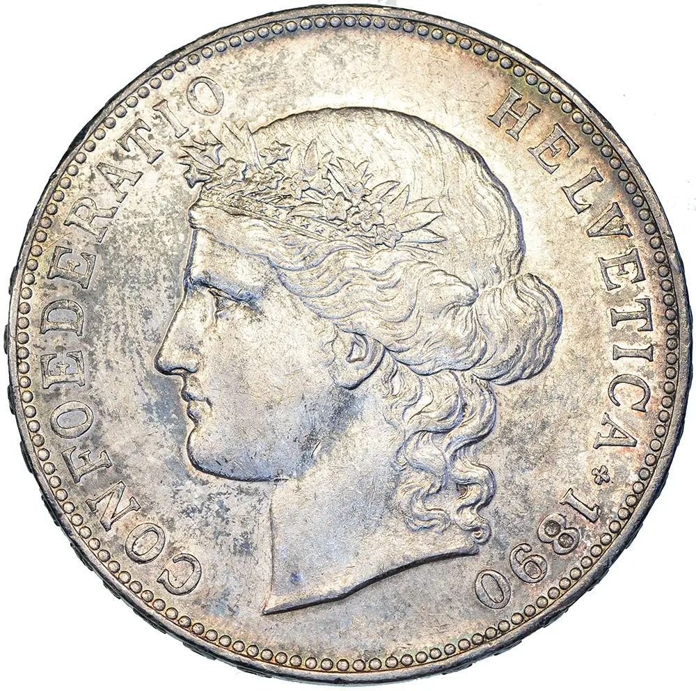 Schweiz 5 Franken - 1890 B (Helvetia)Hier handelt es sich um eine alte Silberumlaufmünze.Originalbilder (Sie erhalten exakt…