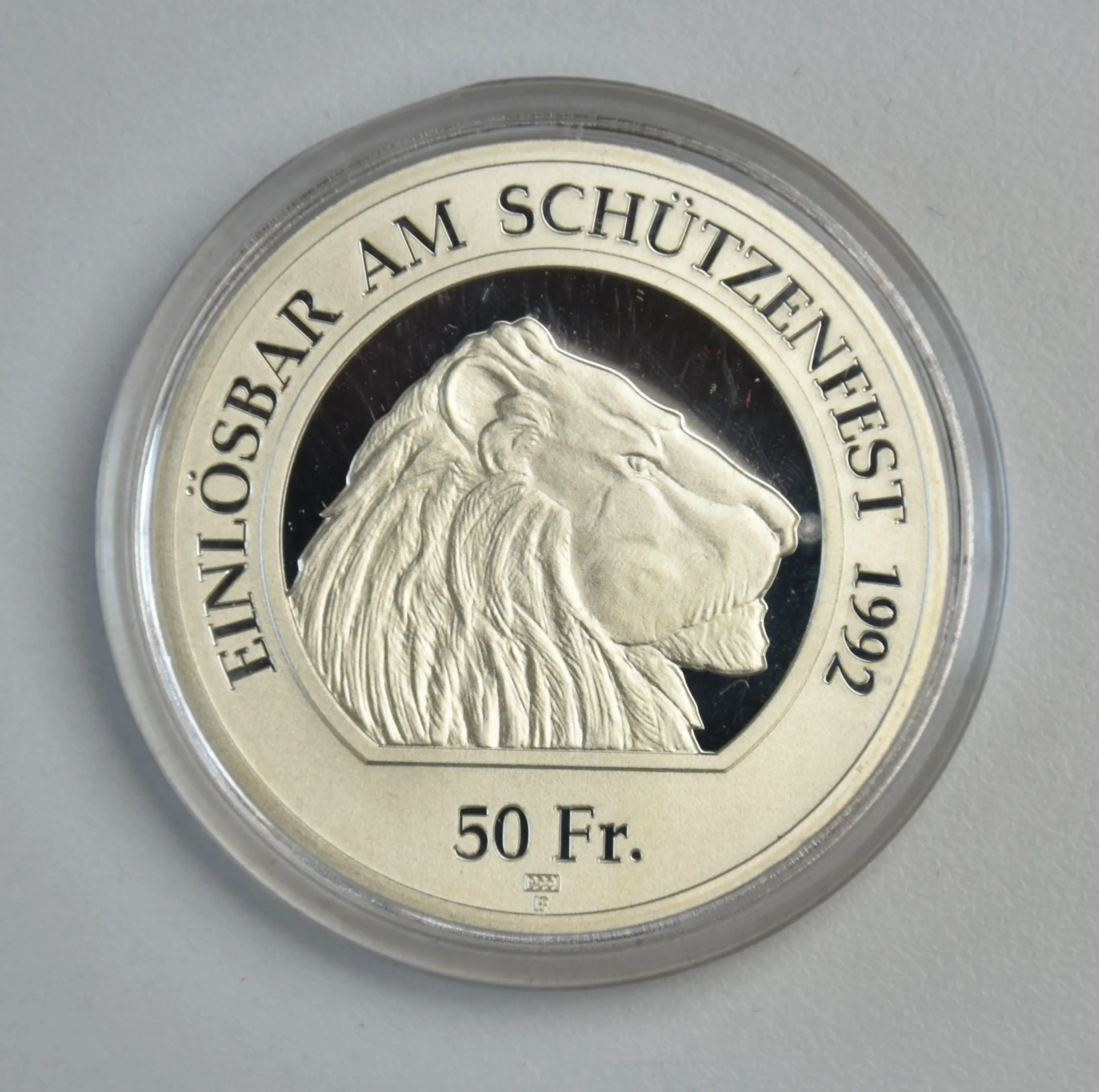 Schweiz Zürcher Kantonalschützenfest DielsdorfNominal: 50 Franken Jahr: 1992Auflage: 1700 Stück Erhaltung: Polierte PlatteBr…