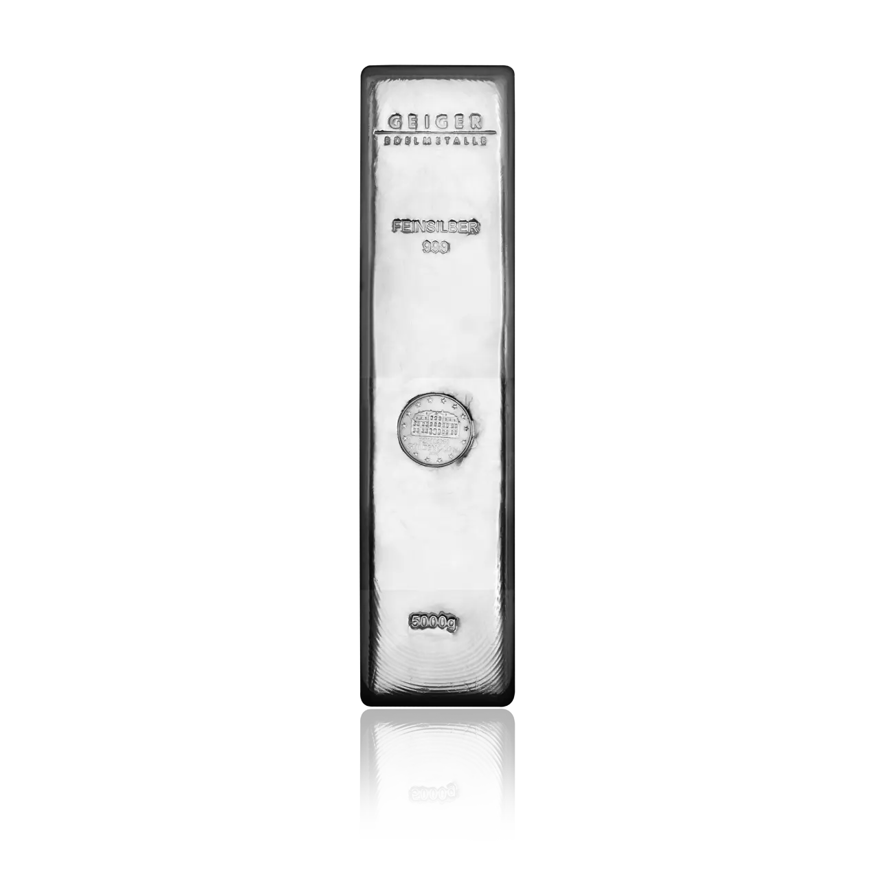 Die 5 kg Silberbarren sind in der Welt der Edelmetalle eine Standardgröße, daher gibt es viele verschiedene Produkte auf dem Markt. Die Barren der SCHLOSS GÜLDENGOSSA Edition heben sich nicht nur aufgrund ihrer Reinheit und durch den Preis ab, sondern auch durch ihr gutes Aussehen. Durch eine ständige Kontrolle und unseren modernen Maschinenpark, können wir Ihnen so einen Klassiker anbieten, der seine Funktion als Geldanlage erfüllt, aber auch optisch durch Punzierung und Proportionen brilliert. Um eine konstante und hohe Qualität sicherzustellen beziehen wir unser Granulat ausschließlich von Lieferanten, die nach dem Good-Delivery Standard der LBMA zertifiziert sind. Die Barren aus dem Hause GEIGER Edelmetalle weisen auf der Vorderseite klar die Angaben zum entsprechenden Barren auf. Sie können die Feinheit von 999/1000, das Gewicht von 5000 g, die Art des Edelmetalls, das Logo der GEIGER Edelmetalle und die Marke SCHLOSS GÜLDENGOSSA eindeutig erkennen. Auf der Rückseite des Barrens befindet sich eine Seriennummer. Mit dieser Nummer kann der Barren bis zur verwendeten Rohstoffcharge zurückverfolgt werden. Um den Barren effektiv vor dem Anlaufen zu schützen werden unsere Barren einzeln in Folie verschweißt. Diese Faktoren machen die Barren mit der Marke SCHLOSS GÜLDENGOSSA, welche eingetragenes Markenzeichen beim Zentralamt für Edelmetallkontrolle in der Schweiz ist, zur idealen Geldanlage.