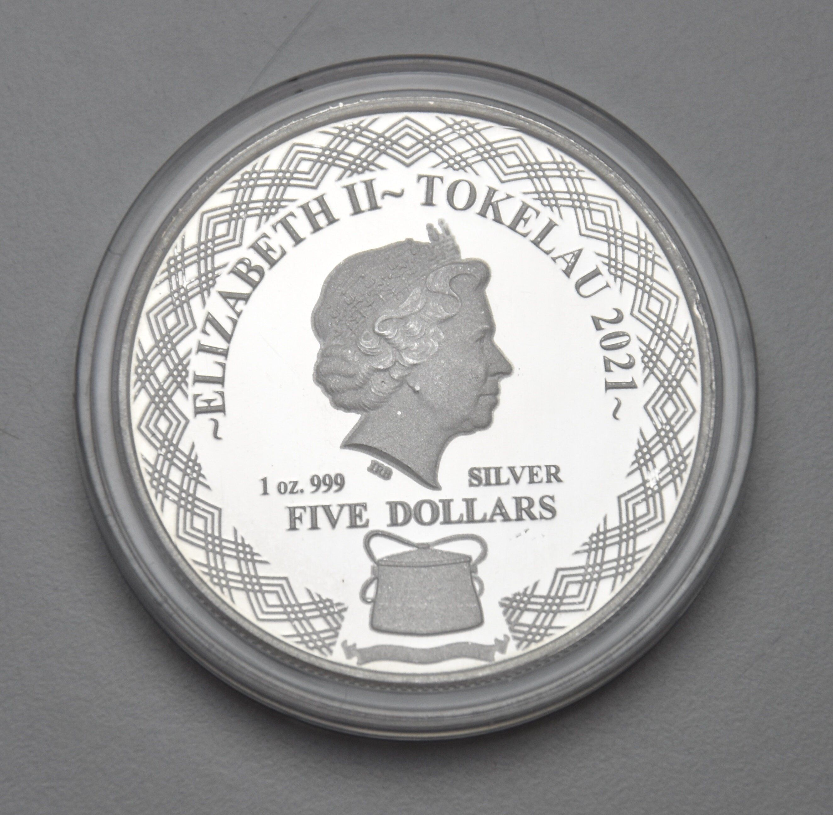 Tokelau 5 Dollars 2021 - 1 Unze Silbermünze "Igelfisch"